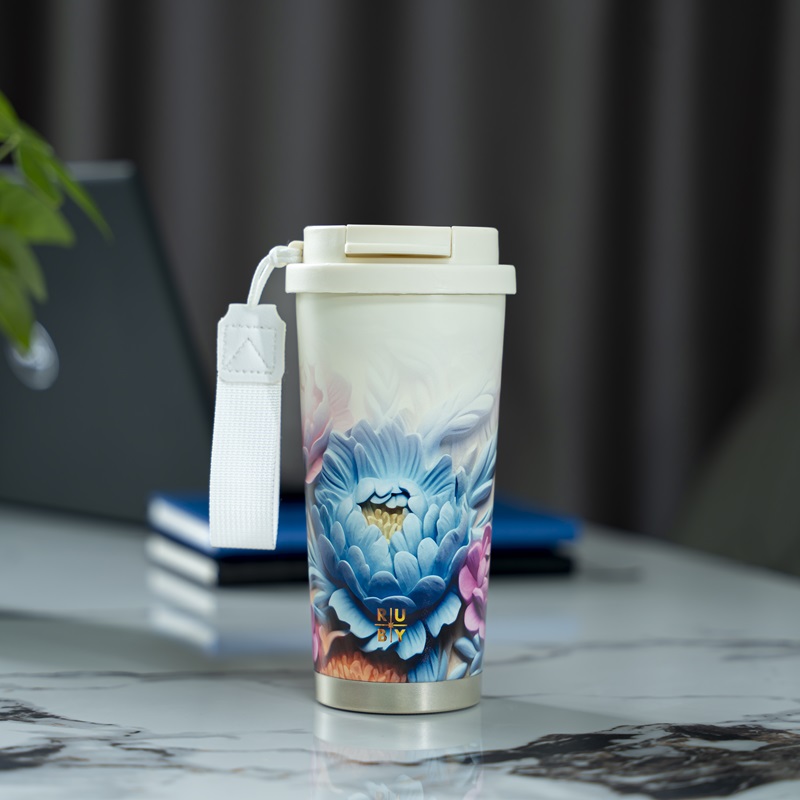 Bình Cốc Giữ Nhiệt SIM03955 - In Họa Tiết Hoa Mẫu Đơn UV 3D 500ml – món quà doanh nghiệp được tạo ra để khẳng định vị thế và tôn vinh quyền lực. Tâm điểm của sản phẩm là đóa hoa Mẫu Đơn xanh vương giả được in nổi 3D đầy ấn tượng, biểu tượng cho sự thịnh vượng và đẳng cấp hoàng gia. Đây không chỉ là một chiếc cốc tiện dụng, mà còn là một tuyên ngôn mạnh mẽ về một thương hiệu luôn hướng đến những giá trị đỉnh cao.