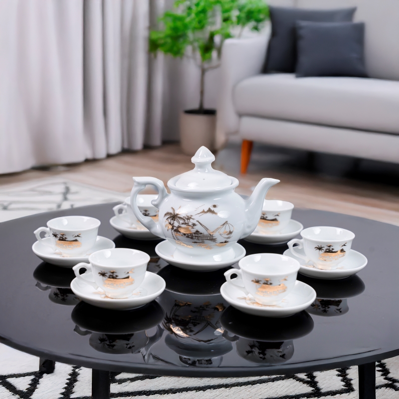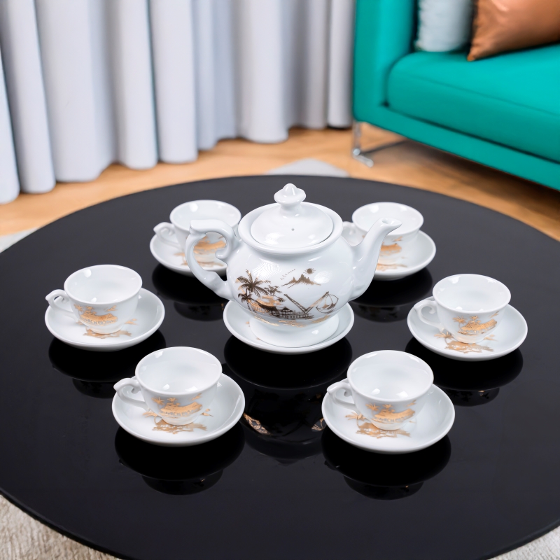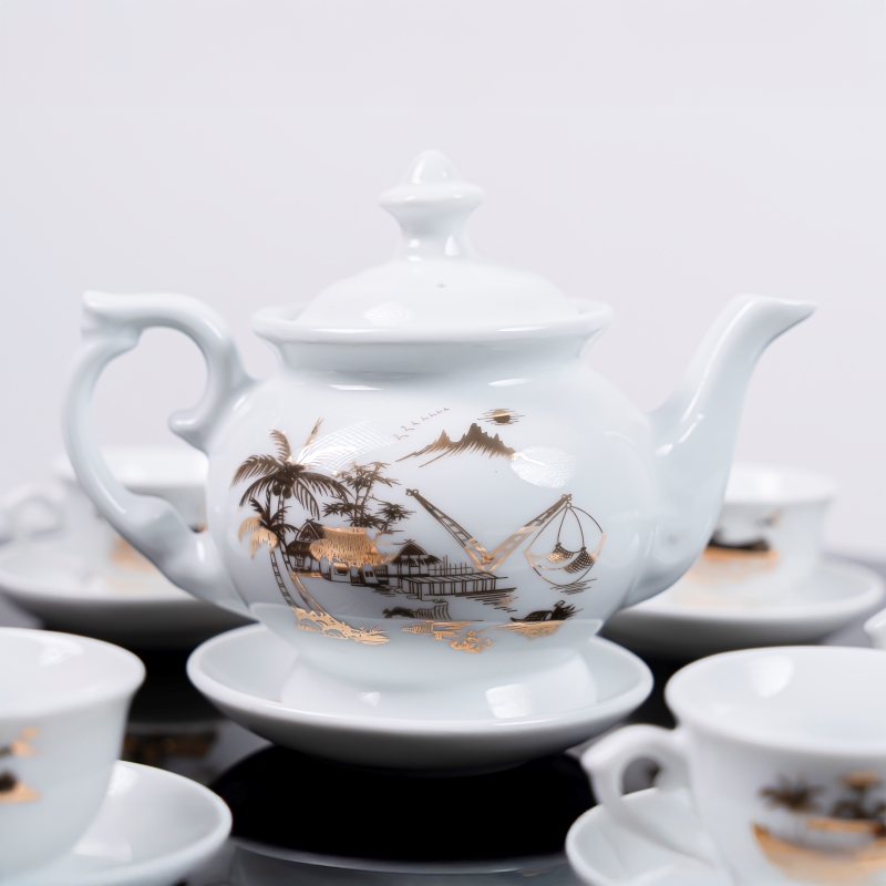 Trong văn hóa Việt, việc thưởng trà từ lâu không chỉ là thú vui tao nhã mà còn thể hiện sự hiếu khách, sự trân trọng với những khoảnh khắc bên gia đình, bạn bè và đối tác. Bộ ấm chén sứ Ruby họa tiết miền quê Nam Bộ mang đến một trải nghiệm tinh tế và đầy hoài niệm, đồng thời cũng là sản phẩm lý tưởng để làm quà tặng doanh nghiệp hoặc quà tri ân in ấn theo yêu cầu.