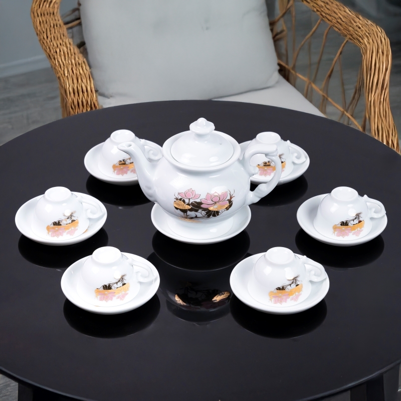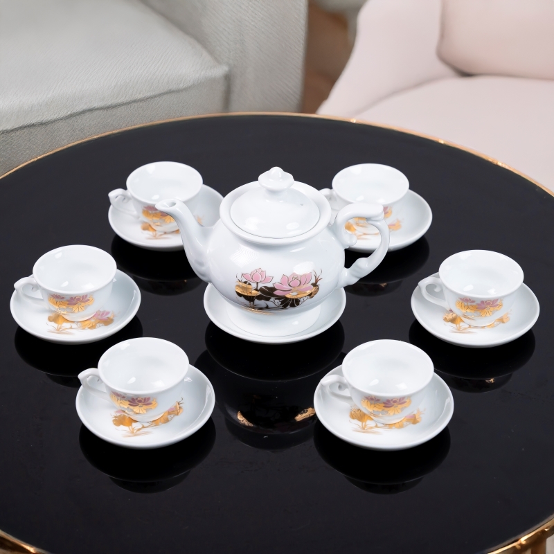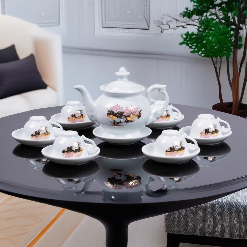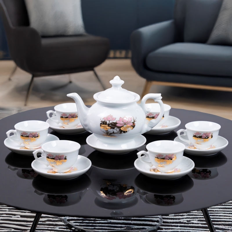 Không chỉ là vật dụng pha trà thường ngày, bộ ấm chén sứ còn là yếu tố thể hiện sự chỉn chu và gu thẩm mỹ của người dùng. Bộ sản phẩm ấm chén sứ Ruby với họa tiết hoa sen được thiết kế tinh tế, nhẹ nhàng nhưng vẫn toát lên sự sang trọng, phù hợp để sử dụng tại gia đình, văn phòng, hay làm quà tặng cho khách hàng, đối tác trong các dịp lễ quan trọng.