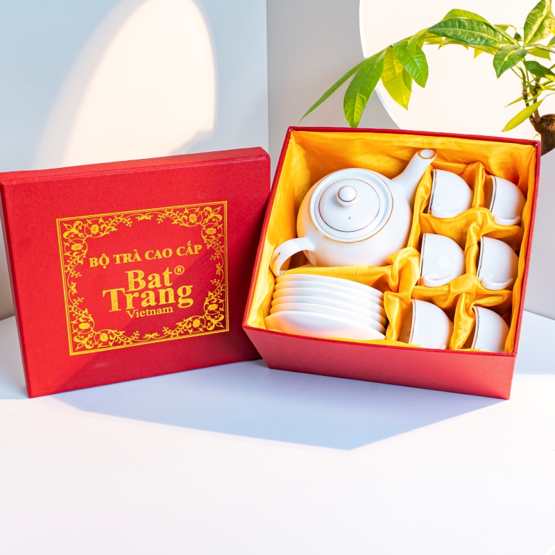 Với tính ứng dụng cao và thiết kế sang trọng, bộ ấm chén sứ trắng viền vàng rất phù hợp để làm quà tặng cho khách hàng, đối tác, nhân viên hoặc các dịp lễ - Tết, kỷ niệm, hội nghị. Ruby cung cấp dịch vụ thiết kế, in ấn logo - thông điệp theo yêu cầu trên ấm hoặc chén, giúp doanh nghiệp ghi dấu ấn thương hiệu một cách tinh tế và chuyên nghiệp.