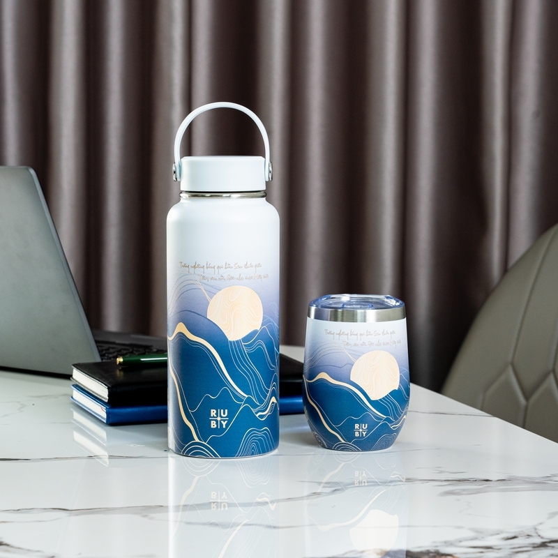 Tiện Ích Đi Kèm: Bình giữ nhiệt 1000ml với quai xách chắc chắn và cốc thưởng thức 350ml nhỏ gọn, phù hợp cho mọi không gian từ văn phòng đến những chuyến đi tĩnh tâm.