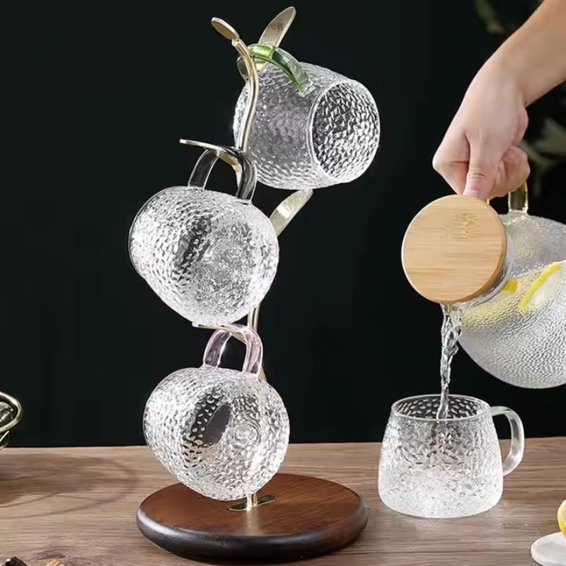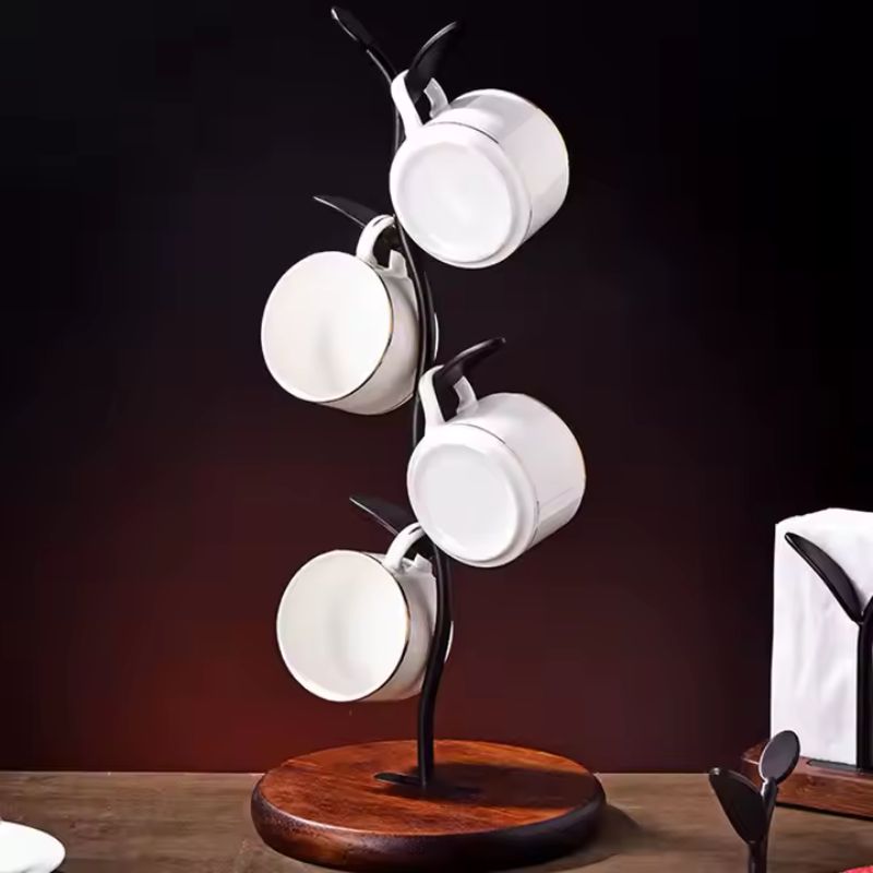 Trọn Bộ Đồng Điệu và Tiện Lợi: Bộ sản phẩm bao gồm 4 cốc, 4 thìa và giá treo được thiết kế hài hòa, sẵn sàng để bạn sử dụng và trưng bày.