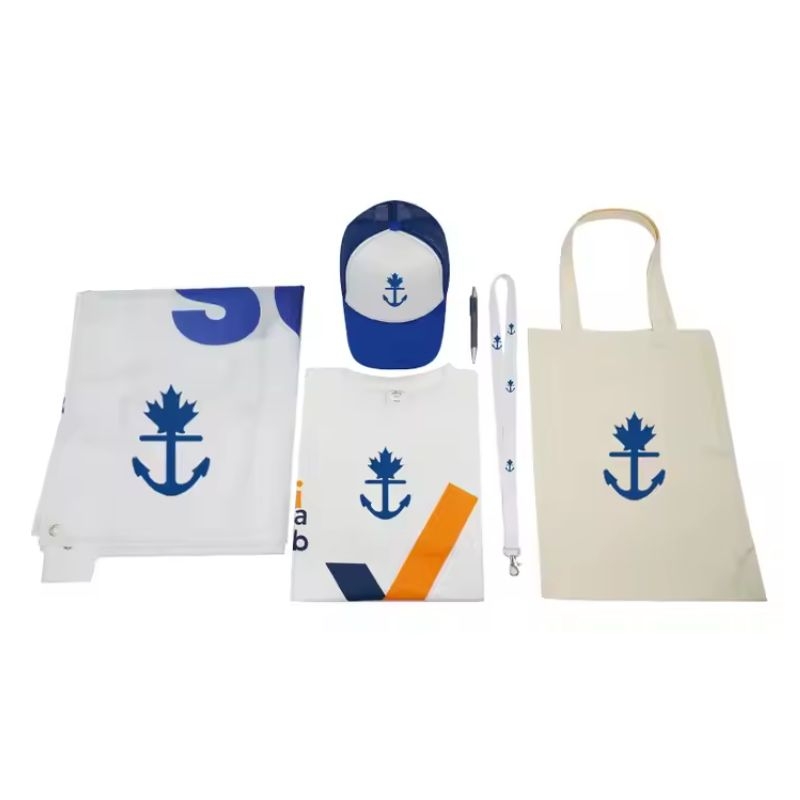 - Bao gồm 7 sản phẩm: áo thun cổ tròn, mũ lưỡi trai, túi tote vải, dù cầm tay, cờ vải, chai nước nhựa cao cấp, ô tròn cỡ lớn.