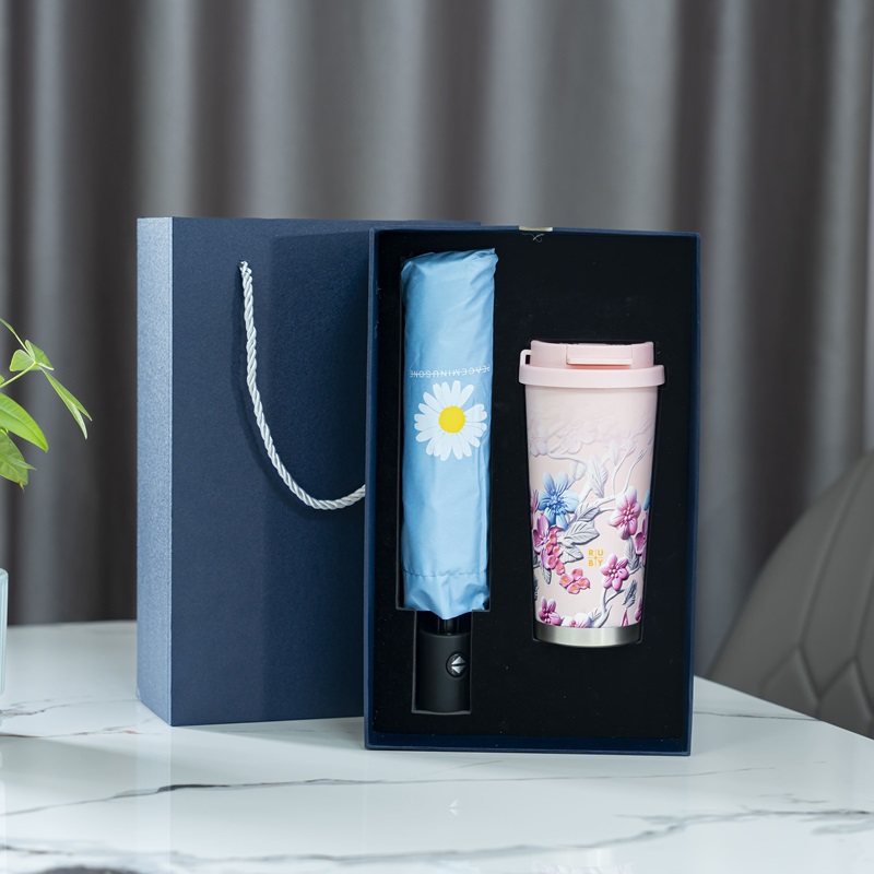Lấy cảm hứng từ vẻ đẹp dịu dàng của thiên nhiên, bộ quà tặng SIM03856 mang đến một cảm giác thư thái và dễ chịu. Sự kết hợp giữa chiếc ô họa tiết hoa cúc tươi sáng và cốc giữ nhiệt trang nhã là món quà ý nghĩa, thể hiện sự quan tâm đến cả những khoảnh khắc thường nhật của người nhận.